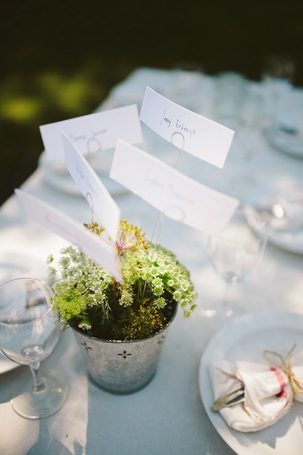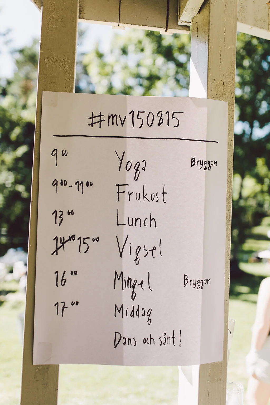 “Vi hade inte gjort en speciellt detaljerad planering för helgen men vi hade pratat med utvalda personer som var huvudansvariga för vissa områden. Exempelvis hämta frallorna på Ica Flygfyren lördag morgon innan 9.00 så det fanns frukost när gästerna vaknade. Koka ägg och kaffe såklart. Hämta brudbuketten och dekorera borden till middagen och så vidare. Vi är otroligt tacksamma för våra fina vänner och familjer som ställde upp och hjälpte oss me det här, så vi kunde avvika strax efter morgondoppet på lördag förmiddag och förbereda oss för vigseln på varsitt håll.
