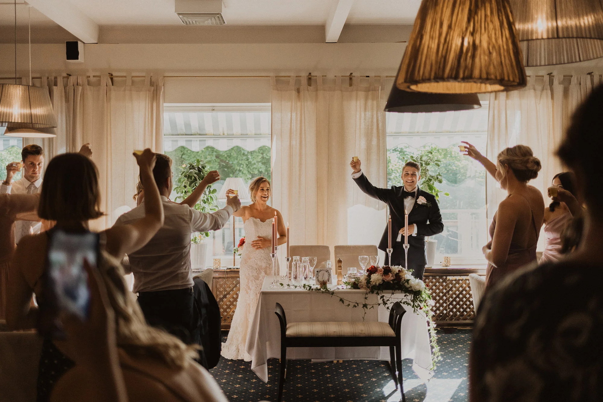 Placera ut lite spel och lekar under minglet så kan gästerna tävla lite innan middagen. Det är perfekt att ha lite aktiviteter om ni har planerat in en porträttfotografering efter vigseln så har gästerna något att göra medan ni är iväg och fotar. Bara fantasin sätter gränser och ni kan välja allt från klassisk tipsrunda, till kubb, krocket, pilkastning eller frågesport. Vill ni att gästerna ska mingla lite extra och lära känna varandra kan ni dela in dem i lag eller ha ett bingospel där de ska försöka pricka in olika fakta med rätt person genom att gå runt och prata med alla!