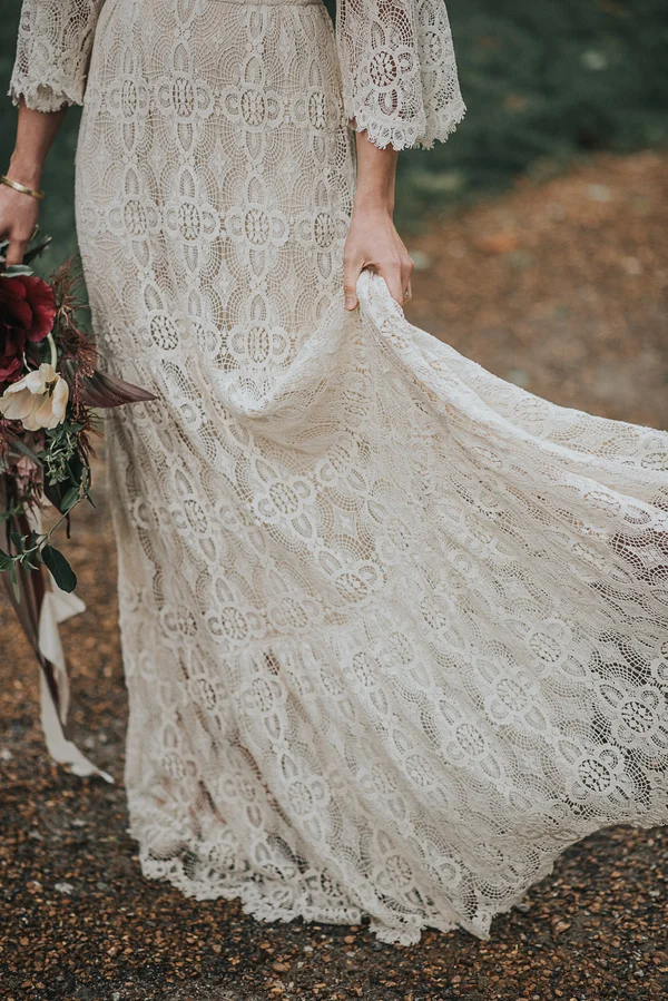 Bohemisk bröllopsinspiration med yvig brudbukett