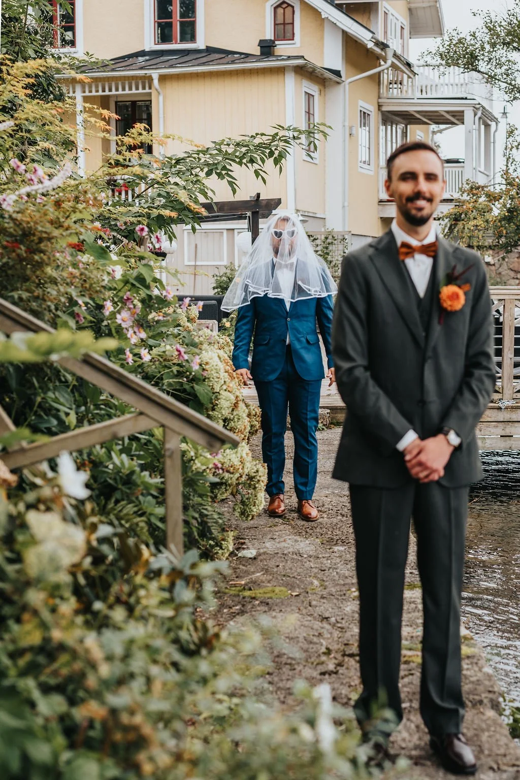 MALIN: Vigseln var en del som vi länge inte riktigt visste hur vi skulle göra med. Vi visste att vi inte ville ha en klassisk vigsel inför alla. Själva vigseln känns så oerhört intimt, vår första tanke var att ha vigseln någonstans ute tidigare på bröllopsdagen med bara brudföljet. Men sen såg vi att Kanalmagasinet i Mem hade drop in vigsel exakt ett år innan vårt bokade lokal datum 20 september.. Så väldigt spontant bestämde vi oss för att ha vigseln ett år innan i hemlighet, vi hade såklart inte löst våra bröllopskläder inför vigseln, men vi ville också spara detta till bröllopsfesten för att kunna ha en ordentlig first look.