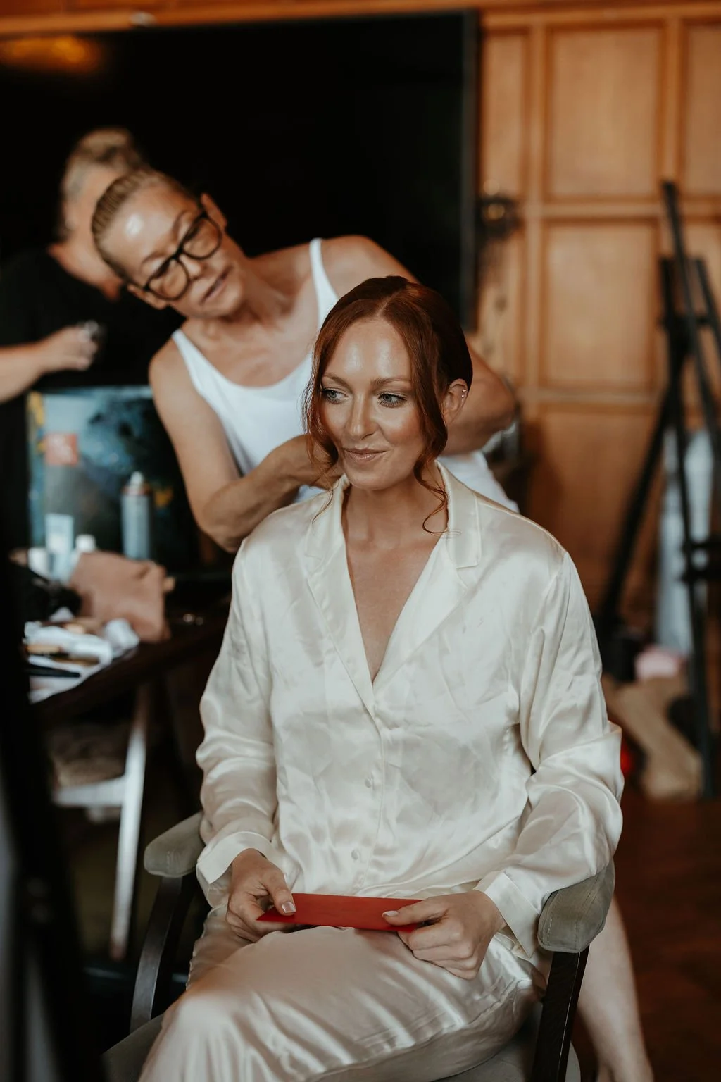 ALEXANDRA: Jag ville ha en väldigt klassisk look med en låg knut och en fin, neutral sminkning i bruna toner. Jag hade bara smycken som betyder mycket för mig och en lånad, gammal ring med en safir, för att hålla den traditionen vid liv. Köpte örhängen från fina Nice Cream London och skorna blev drömmen - vita Manolo Blahnik. Är det någon gång man ska gå all in så är det för ens bröllop!