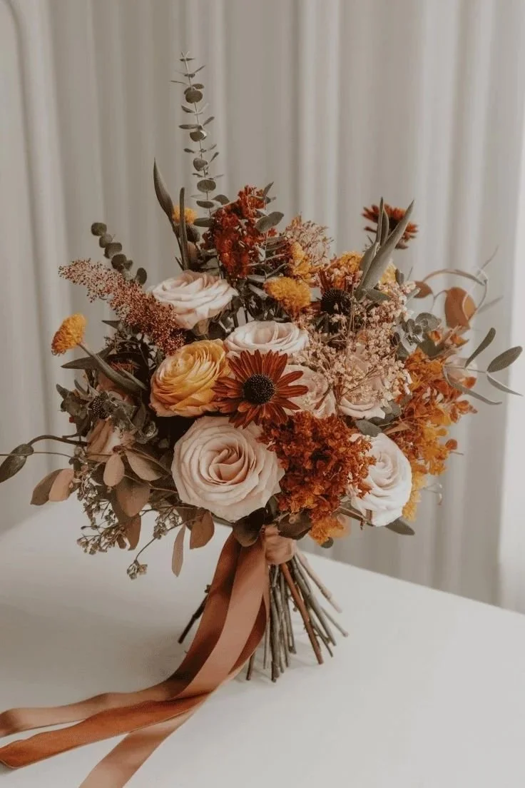 Det är något alldeles särskilt med höstbröllop – färgerna, ljuset och den där krispiga känslan i luften. Och vad passar då bättre än en brudbukett som speglar just det? I detta inlägg har vi samlat 21 höstiga buketter fyllda med allt från varma jordtoner och mustiga röda nyanser till oväntade inslag av bär, gräs och torkade blommor. Perfekt inspiration för dig som planerar ett bröllop under årets mysigaste säsong – eller bara älskar höstens magi.